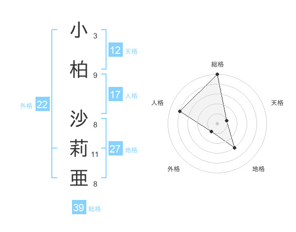 小柏 沙莉亜さんの総格は39画の5点!