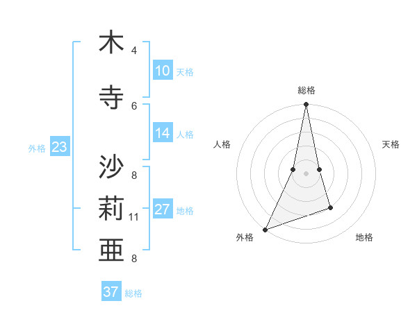 木寺 沙莉亜さんの総格は37画の5点!