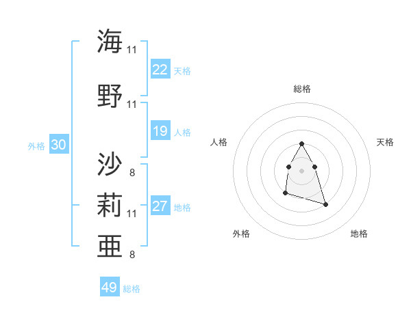 海野 沙莉亜さんの総格は49画の2点!