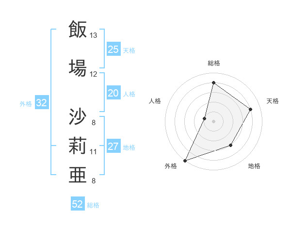 飯場 沙莉亜さんを姓名の画数から五運を鑑定