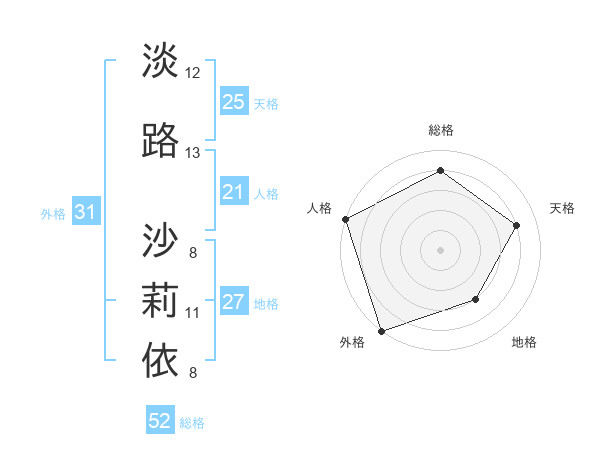 淡路 沙莉依さんを姓名の画数から五運を鑑定