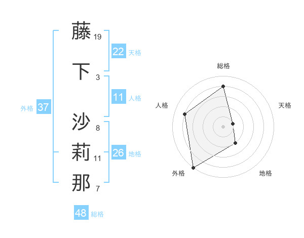 藤下 沙莉那さんの天格は22画の1点!