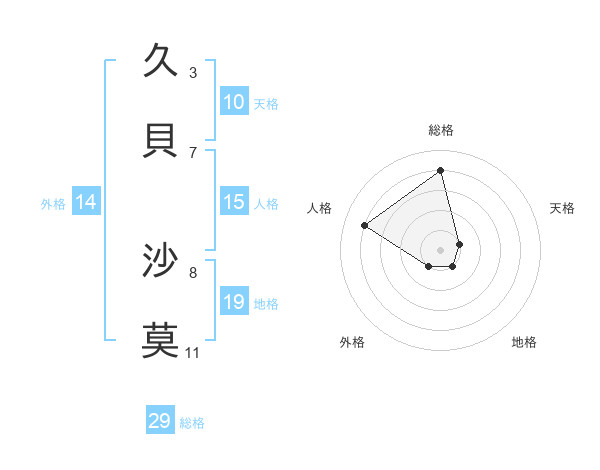 久貝 沙莫さんを姓名の画数から五運を鑑定