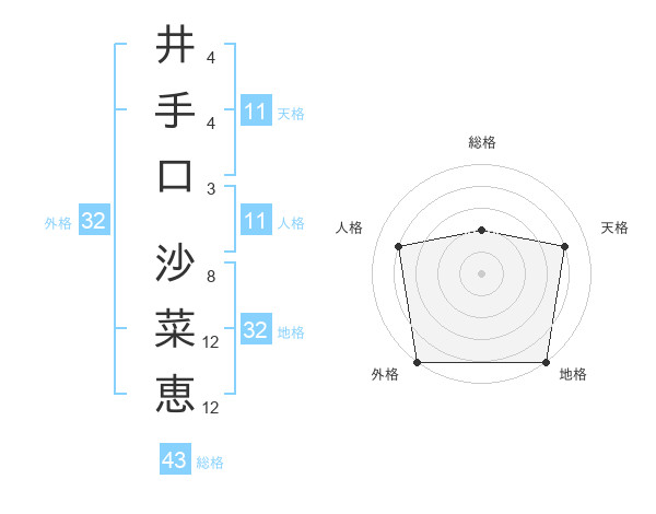 井手口 沙菜恵さんを姓名の画数から五運を鑑定