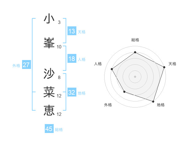 小峯 沙菜恵さんの総格は45画の4点!