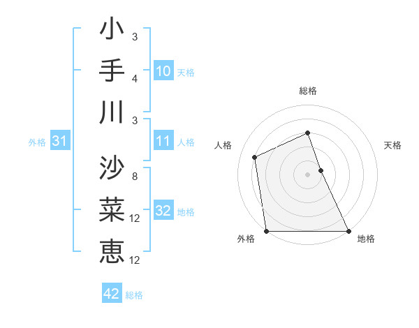 小手川 沙菜恵さんを姓名の画数から五運を鑑定