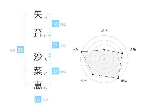 矢葺 沙菜恵さんを姓名の画数から五運を鑑定