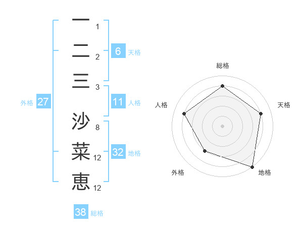 一二三 沙菜恵さんを姓名の画数から五運を鑑定