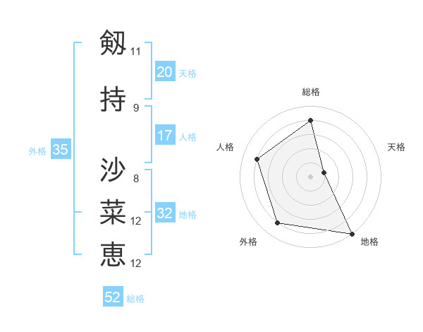 剱持 沙菜恵さんを姓名の画数から五運を鑑定