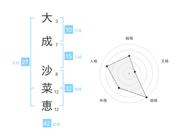 大成 沙菜恵さんを姓名の画数から五運を鑑定