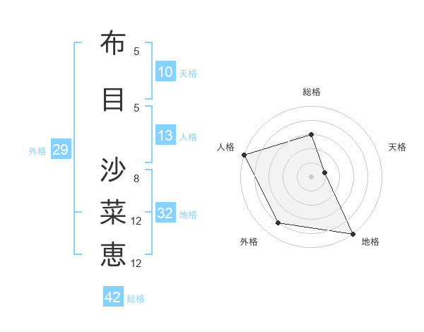 布目 沙菜恵さんを姓名の画数から五運を鑑定