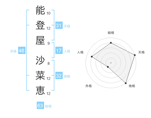 能登屋 沙菜恵さんを姓名の画数から五運を鑑定