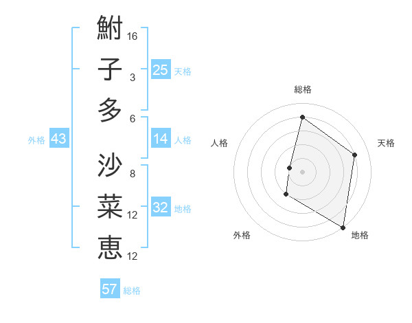 鮒子多 沙菜恵さんの総格は57画の4点!
