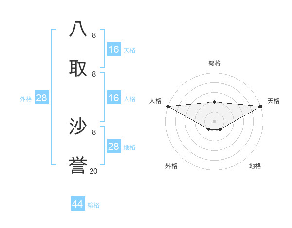 八取 沙誉さんの総格は44画の2点!