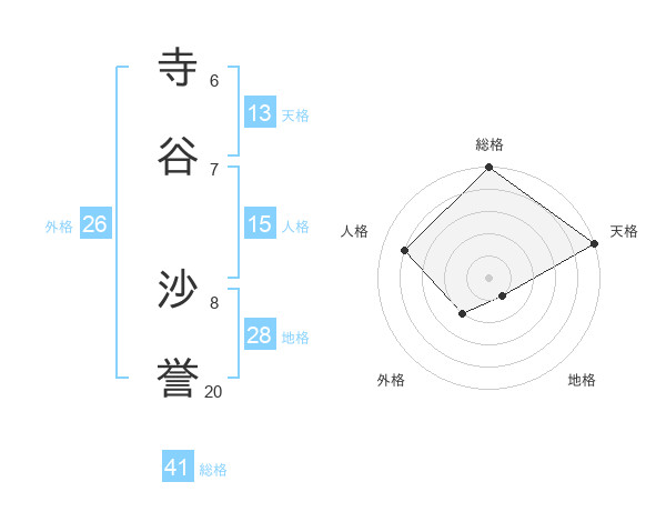 寺谷 沙誉さんを姓名の画数から五運を鑑定