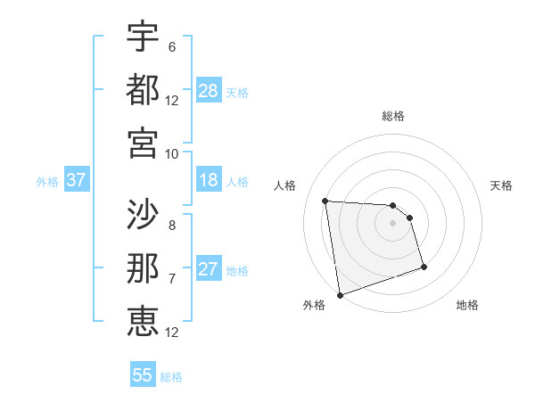 宇都宮 沙那恵さんを姓名の画数から五運を鑑定