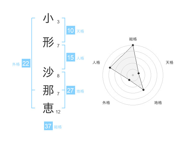 小形 沙那恵さんを姓名の画数から五運を鑑定
