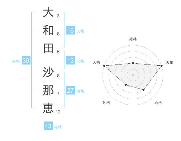 大和田 沙那恵さんを姓名の画数から五運を鑑定