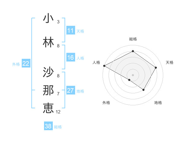 小林 沙那恵さんの外格は22画の1点!