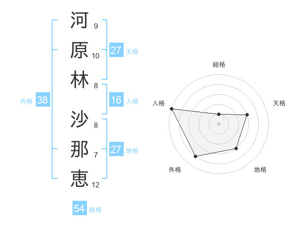 河原林 沙那恵さんを姓名の画数から五運を鑑定