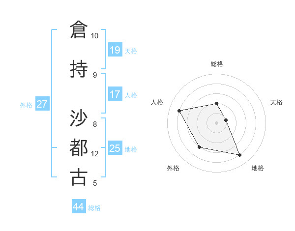倉持 沙都古さんを姓名の画数から五運を鑑定
