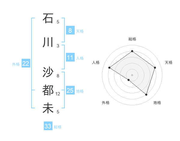 石川 沙都未さんの天格は8画の4点!