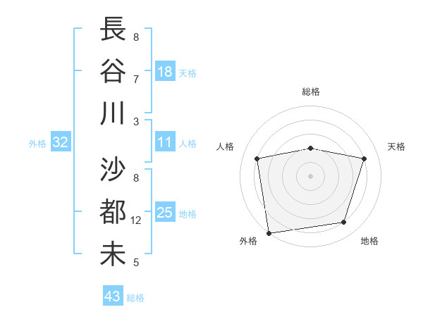 長谷川 沙都未さんの外格は32画の5点!