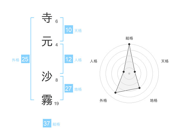 寺元 沙霧さんの総格は37画の5点!