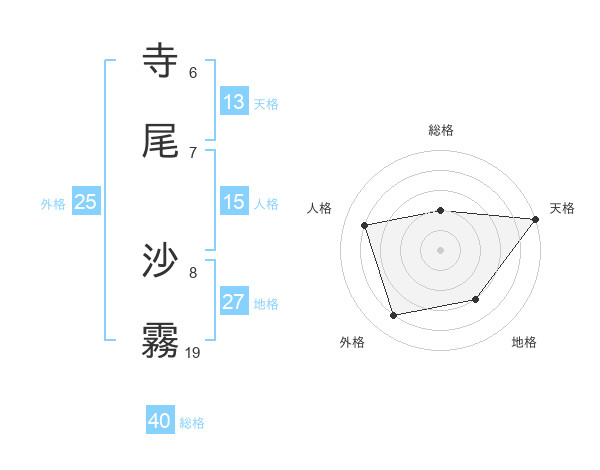 寺尾 沙霧さんの天格は13画の5点!