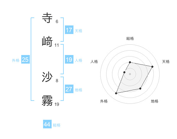 寺﨑 沙霧さんを姓名の画数から五運を鑑定
