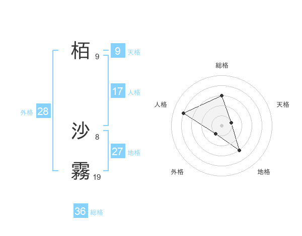 栢 沙霧さんを姓名の画数から五運を鑑定