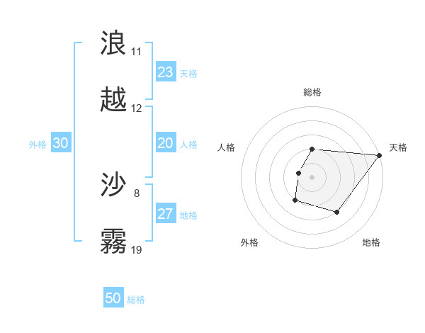 浪越 沙霧さんの総格は50画の2点!