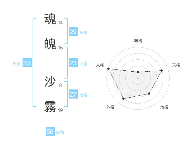 魂魄 沙霧さんを姓名の画数から五運を鑑定