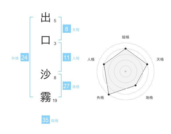 出口 沙霧さんを姓名の画数から五運を鑑定
