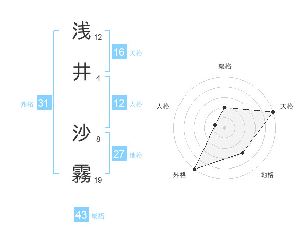 浅井 沙霧さんの外格は31画の5点!