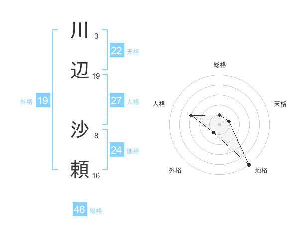 川辺 沙頼さんの外格は19画の1点!