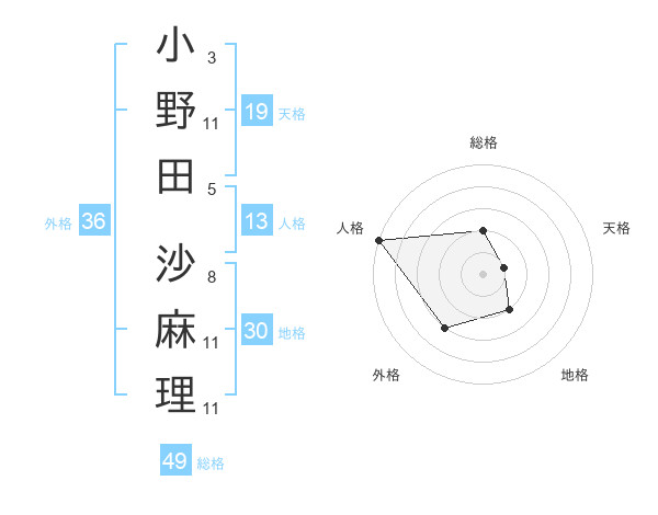小野田 沙麻理さんの総格は49画の2点!