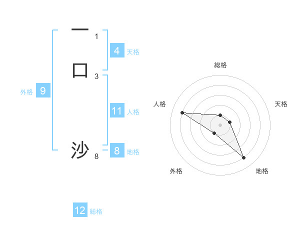 一口 沙さんの地格は8画の4点!