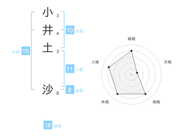 小井土 沙さんの総格は18画の4点!