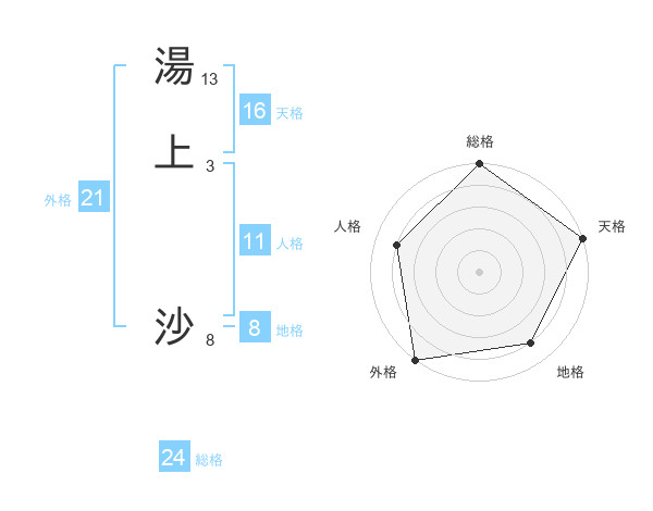 湯上 沙さんの外格は21画の5点!