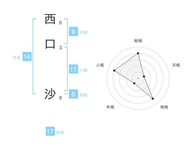 西口 沙さんの総格は17画の4点!