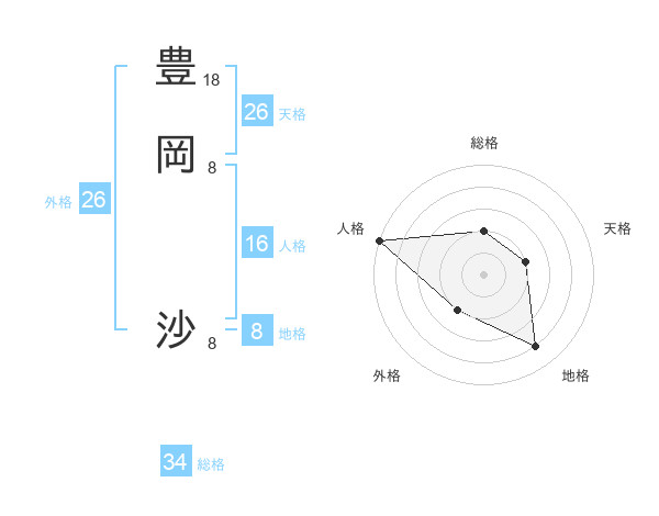 豊岡 沙さんの総格は34画の2点!