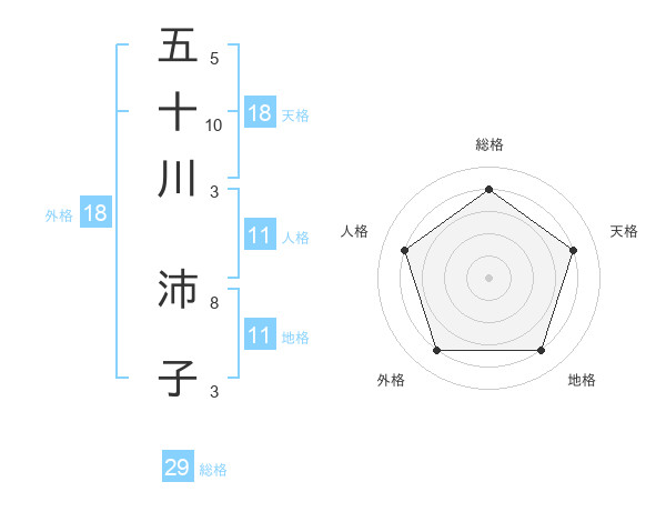 五十川 沛子さんの総格は29画の4点!