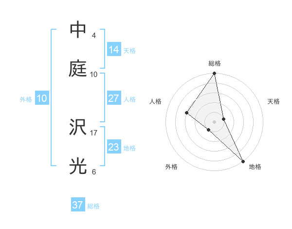 中庭 沢光さんを姓名の画数から五運を鑑定