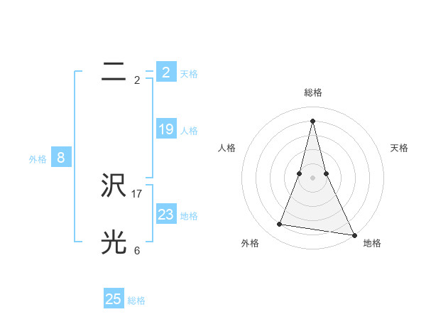 二 沢光さんの地格は23画の5点