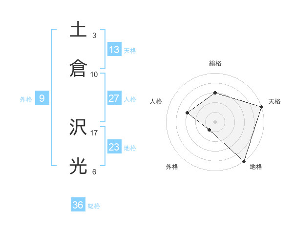土倉 沢光さんの総格は36画の3点!