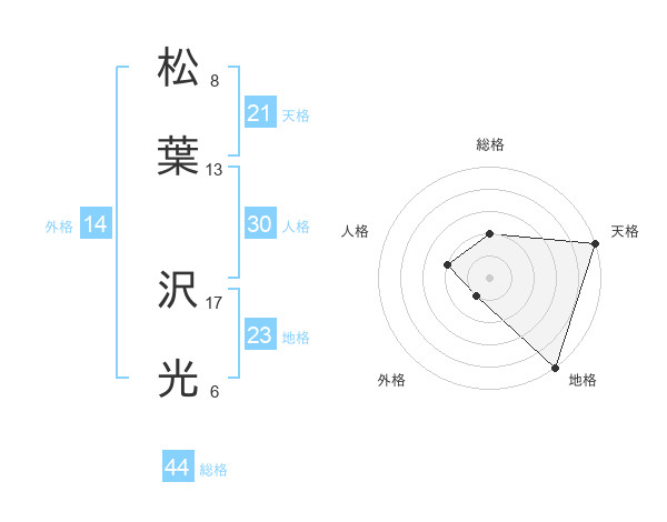 松葉 沢光さんを姓名の画数から五運を鑑定