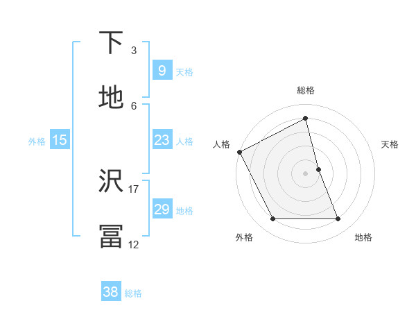 下地 沢冨さんを姓名の画数から五運を鑑定