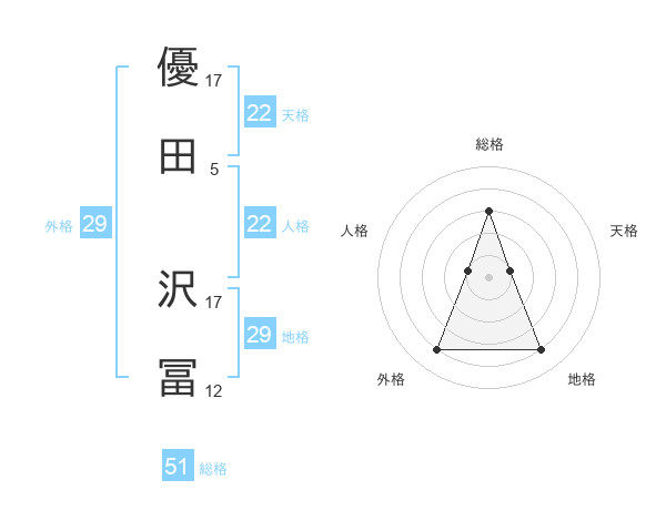 優田 沢冨さんを姓名の画数から五運を鑑定