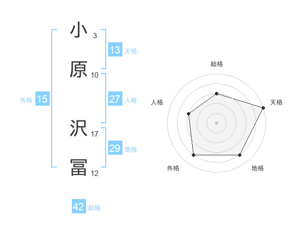 小原 沢冨さんを姓名の画数から五運を鑑定